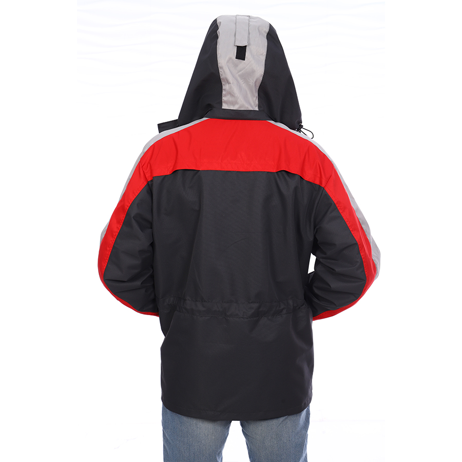 Съемный капюшон пристегивается на молнию, регулируется по объему хлястиком и по лицевому вырезу с помощью шнура и фиксаторов. По низу куртки предусмотрена регулировка шнуром и фиксаторами.