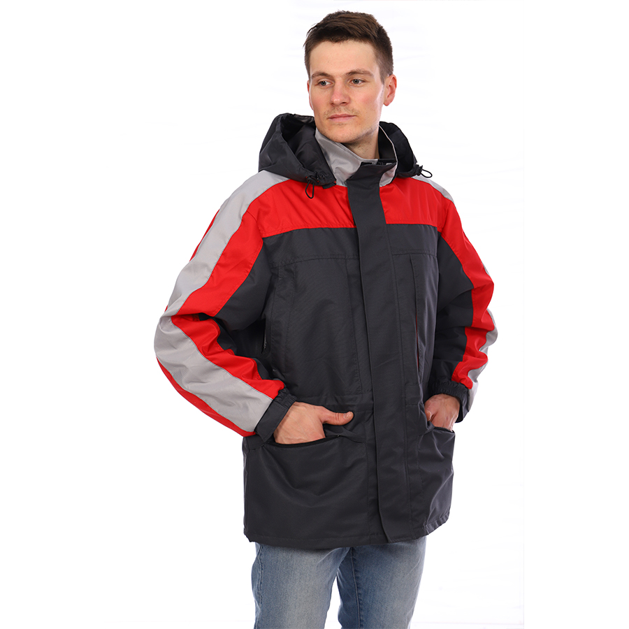 Куртка на подкладке, с застежкой на двухзамковую молнию, закрытую ветрозащитной планкой, с воротником-стойкой. Удобные внешние и внутренние карманы: нагрудные с объемной складкой и застежкой на молнию, боковые с фиксированным клапаном и застежкой на молнию, внутренний карман для телефона с клапаном, внутренний карман с застежкой на липучку.