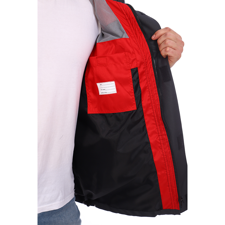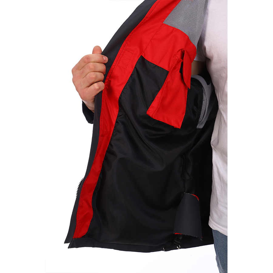 Верхняя часть подкладки выполнена из трикотажной сетки, подборта и внутренние карманы из отделочной ткани.